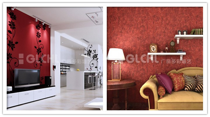 一、紅色是最搶眼的顏色,與在視覺上起收縮效果的藍色相比,紅色對視覺起強烈的沖擊作用。所以使用上,一定要注意緩和壓迫感,在使用量上要控制在總量的2成左右,或者不用鮮亮的紅色,而改用灰色調(diào)或暗色調(diào)的紅色,廣麗建議盡量將有強烈視覺沖擊的顏色用在局部裝飾中,例如背景墻的裝飾,可使用廣麗森特壁材系列藝術(shù)涂料與這類顏色進行搭配,即體現(xiàn)質(zhì)感,又能讓房間墻面產(chǎn)生亮點。