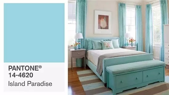 天堂島是一個(gè)令人耳目一新的水嫩色調(diào),被用來(lái)轉(zhuǎn)換情境。清涼的藍(lán)綠色韻,充份說(shuō)明我們成功脫逃的偉大夢(mèng)想,天堂島是象征性的熱帶場(chǎng)域和我們放松身心的渴望。猜得到這顏色的靈感是源自于海洋中的島嶼,感覺(jué)相當(dāng)夢(mèng)幻,不管是穿起這個(gè)顏色去度假還是窩在點(diǎn)點(diǎn)海藍(lán)的小家中,都是相當(dāng) relax。